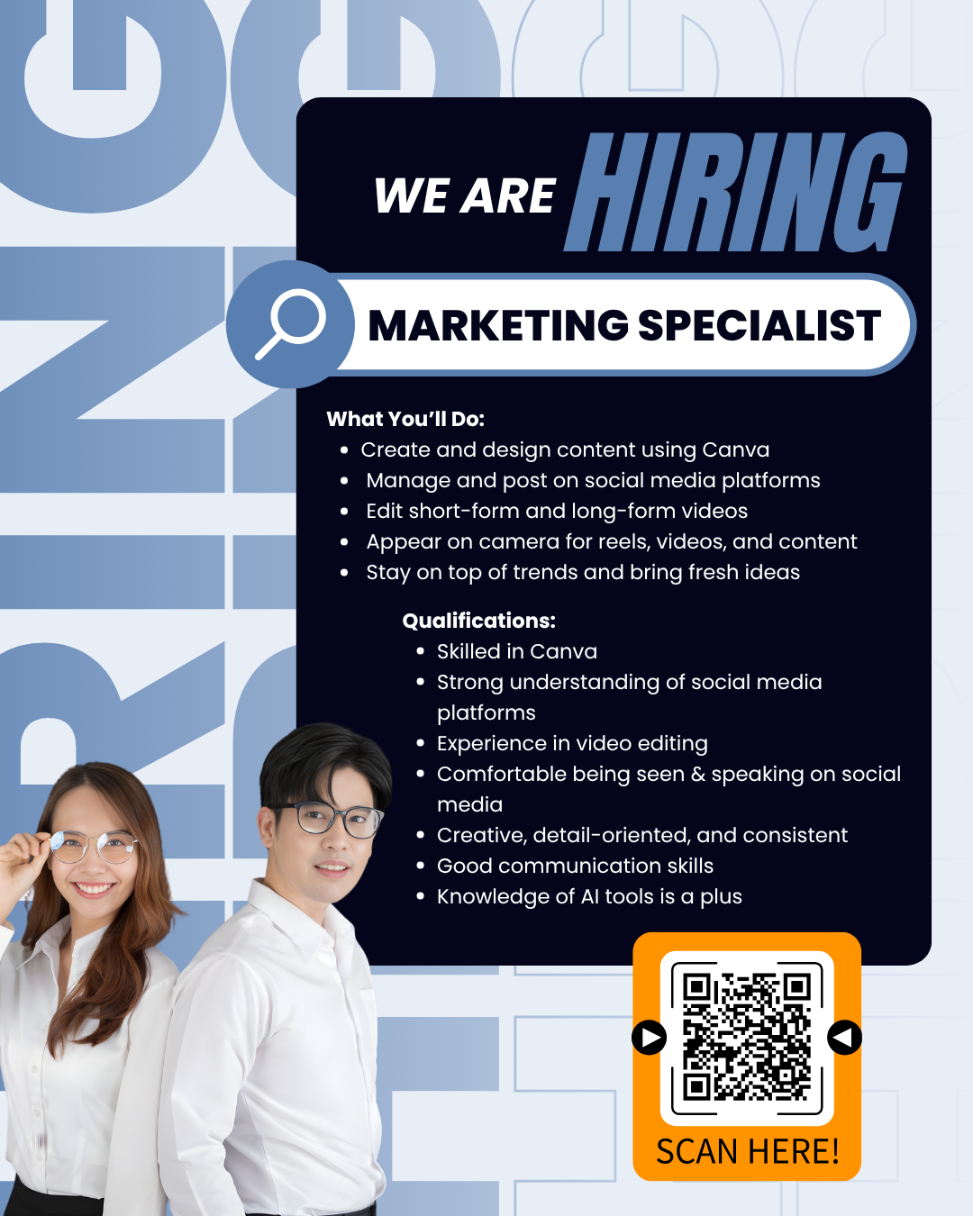 This role involves creating content, editing videos, and posting consistently. We value creativity, reliability, and attention to detail.